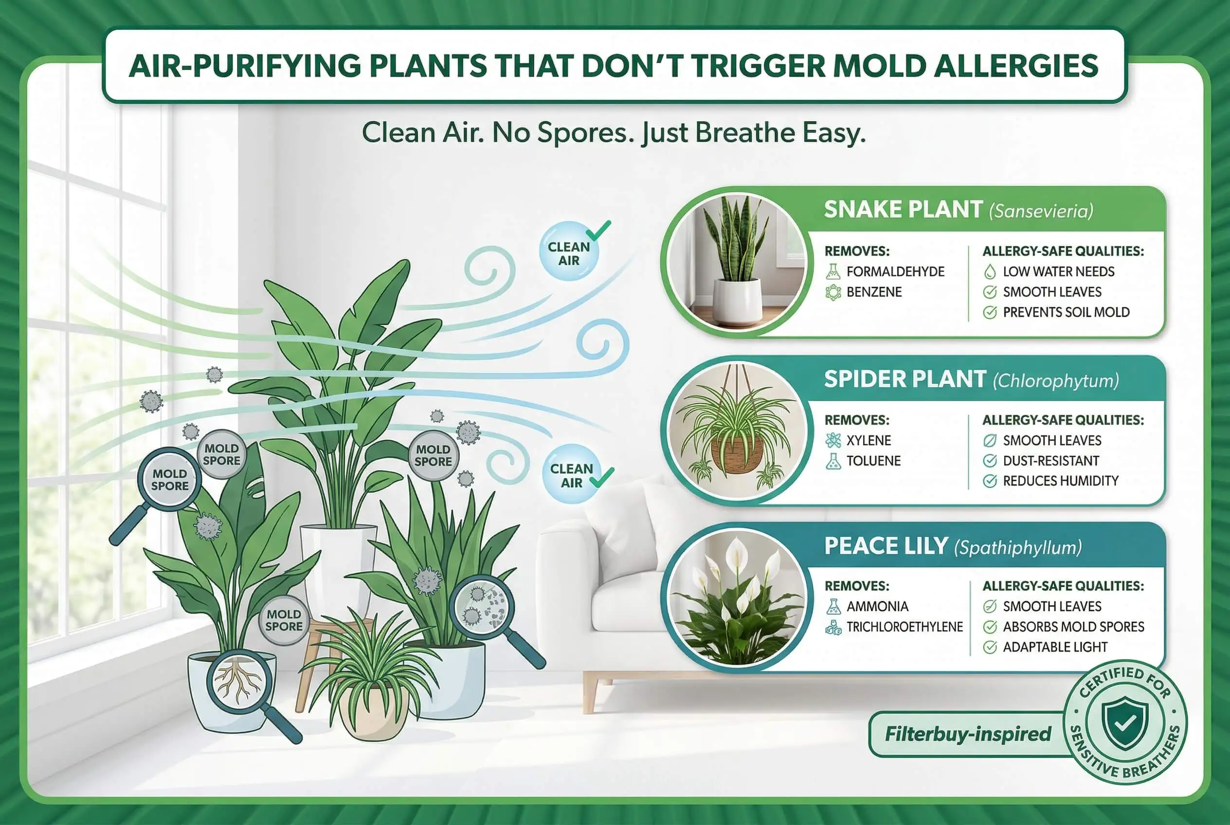 Q: Which air purifying plants are safest for mold allergy sufferers?